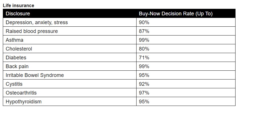 The findings, taken from UnderwriteMe’s Protection Platform Pulse Report 2024, showed that life decisions ranged from 99% for asthma, back pain (99%) and osteoarthritis (97%) at the higher end, compared to 80% and 71% where cholesterol and diabetes were disclosed.