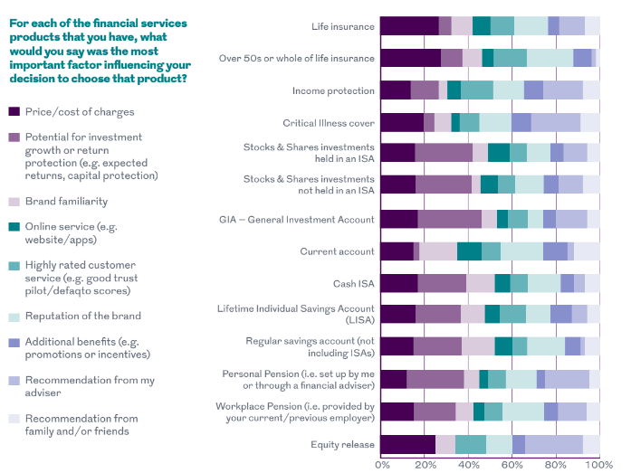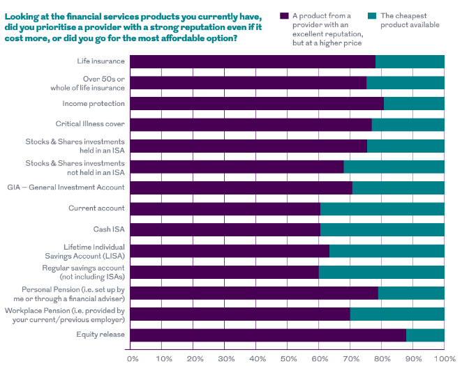 Furthermore, across protection products the reputation of the provider was far more important than price, with only personal pensions and equity release rated more highly in this regard.