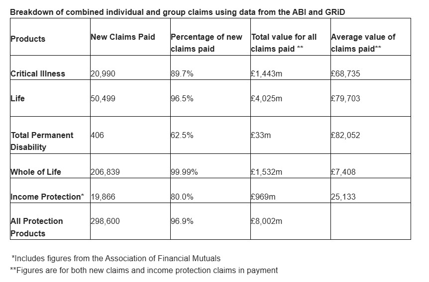 Insurers paid out £5.32bn claims across individual life insurance, income protection and critical illness policies.