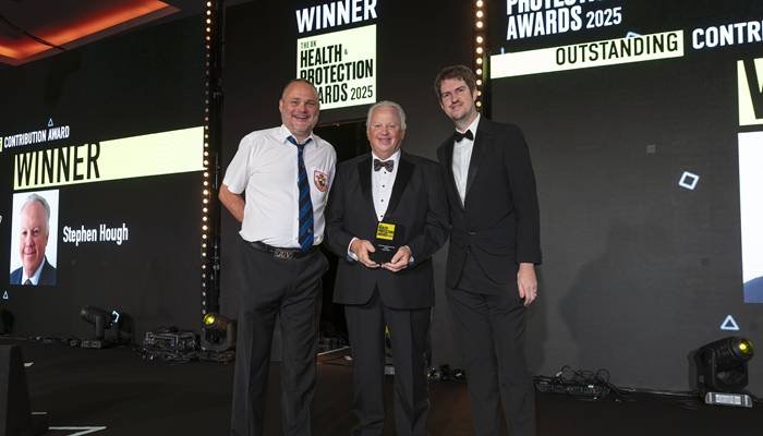 Stephen Hough (pictured centre) has been recognised for his outstanding contribution to the health and protection industry at the Health & Protection Awards 2025.